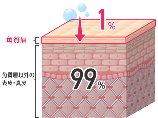 ※皮膚(表皮・真皮)の厚さは約2.2mm程度。このうち一般的に化粧品で謳われる「浸透」は角質層 0.02mmであるため